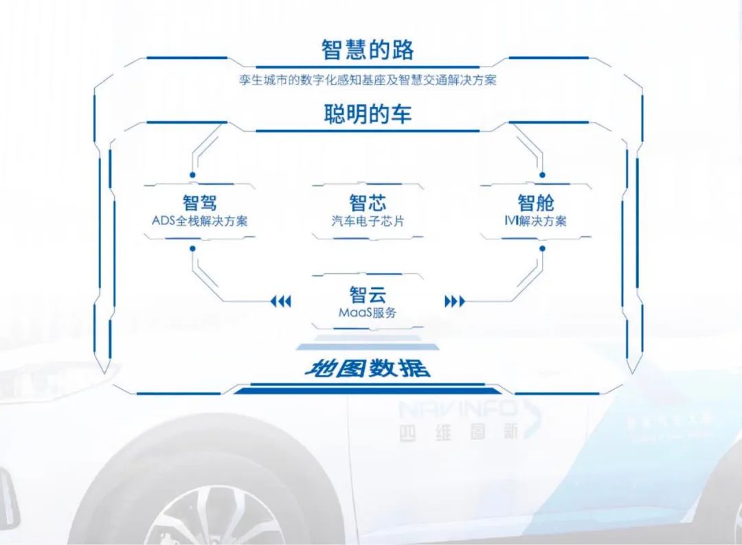 進入2021年後,四維圖新進行了全新業務體系的重組,形成了“智雲、智駕、智艙、智芯”四大板塊,專注於智能汽車的整體解決方案,並拓展到了城市智能化。