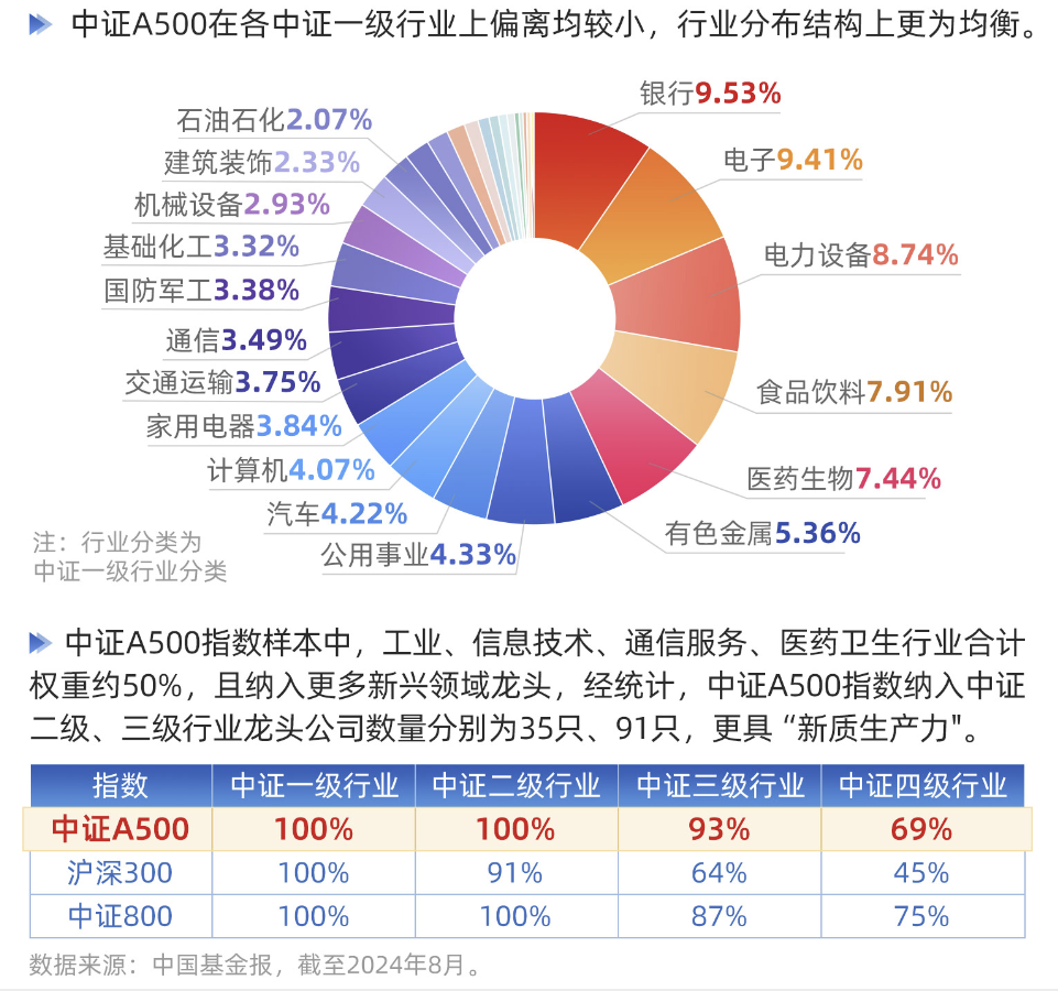 總的來説,中證A500給投資者帶來了更全面、更具代表性的寬基、“新質生產力”含量大,符合中國經濟高質量發展的寬基、更先進編制方案提升持倉體驗。