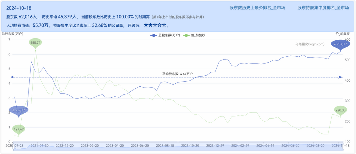 從9月底的反彈潮到現在,愛美客股東人數穩步增長。而再往前看,愛美客的股東人數越跌越多。不知道有多少人在等着機會,抄底這個曾經的王者。