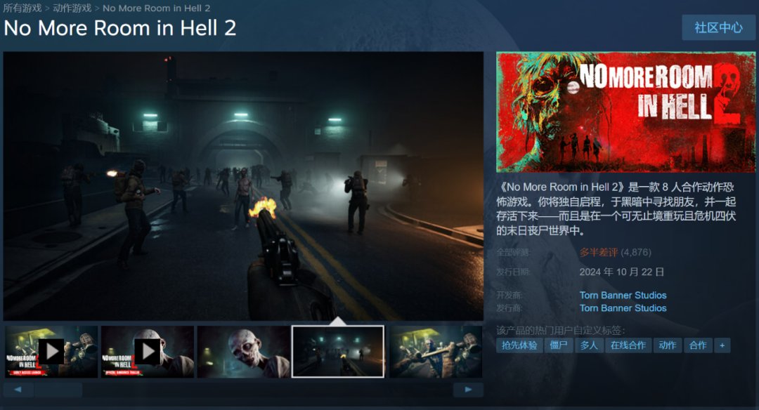 10月22日倉促登陸Steam搶先體驗(EA)的第一人稱硬核打殭屍遊戲《地獄已滿2》(No More Room in Hell 2),不幸淪為“多半差評”大家庭的一員,快跟《浩劫前夕》坐一桌了。