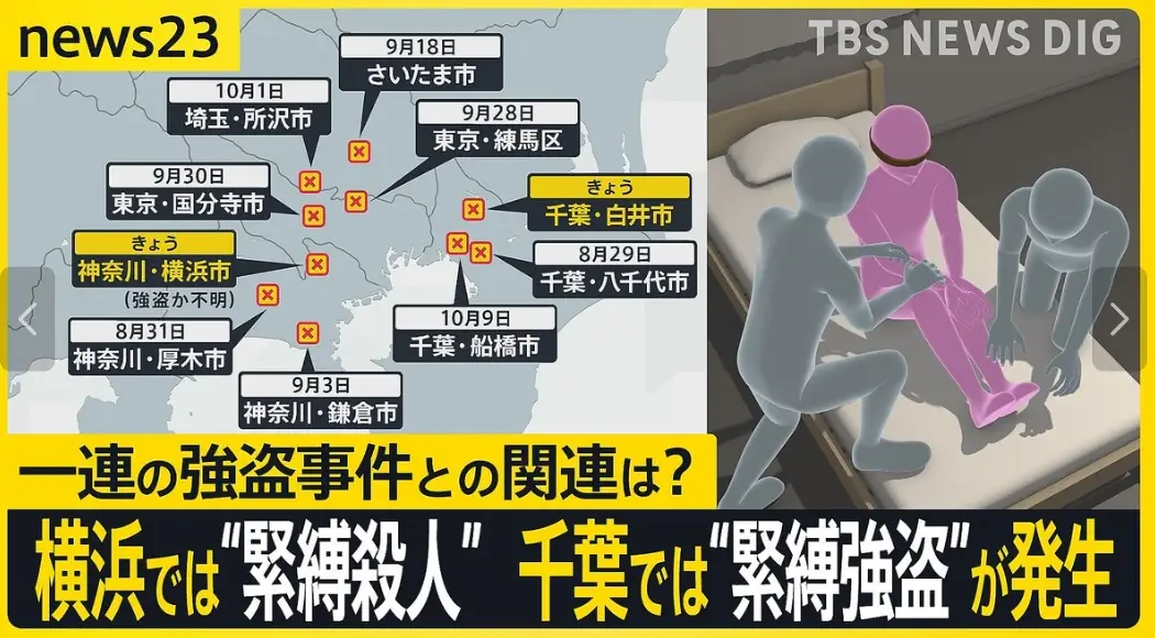 神奈川七旬老翁慘遭毆打致全身骨折而亡,家中財物被洗劫一空;千葉縣高齡母女遭歹徒非法入室搶劫,綁架施暴被迫交出銀行取款密碼;而幾乎在同一時間,東京都與埼玉縣也發生了多起類似的暴力入室搶劫事件……