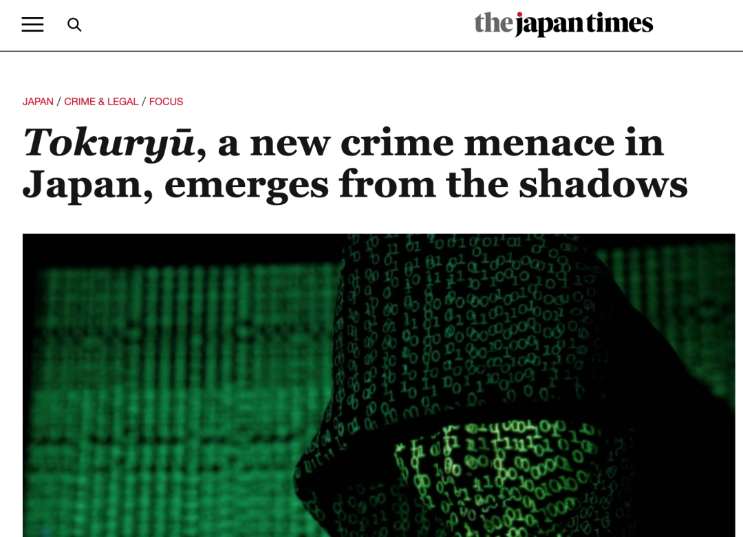 這一切,都離不開近兩年在日本興起的tokuryu犯罪風潮。