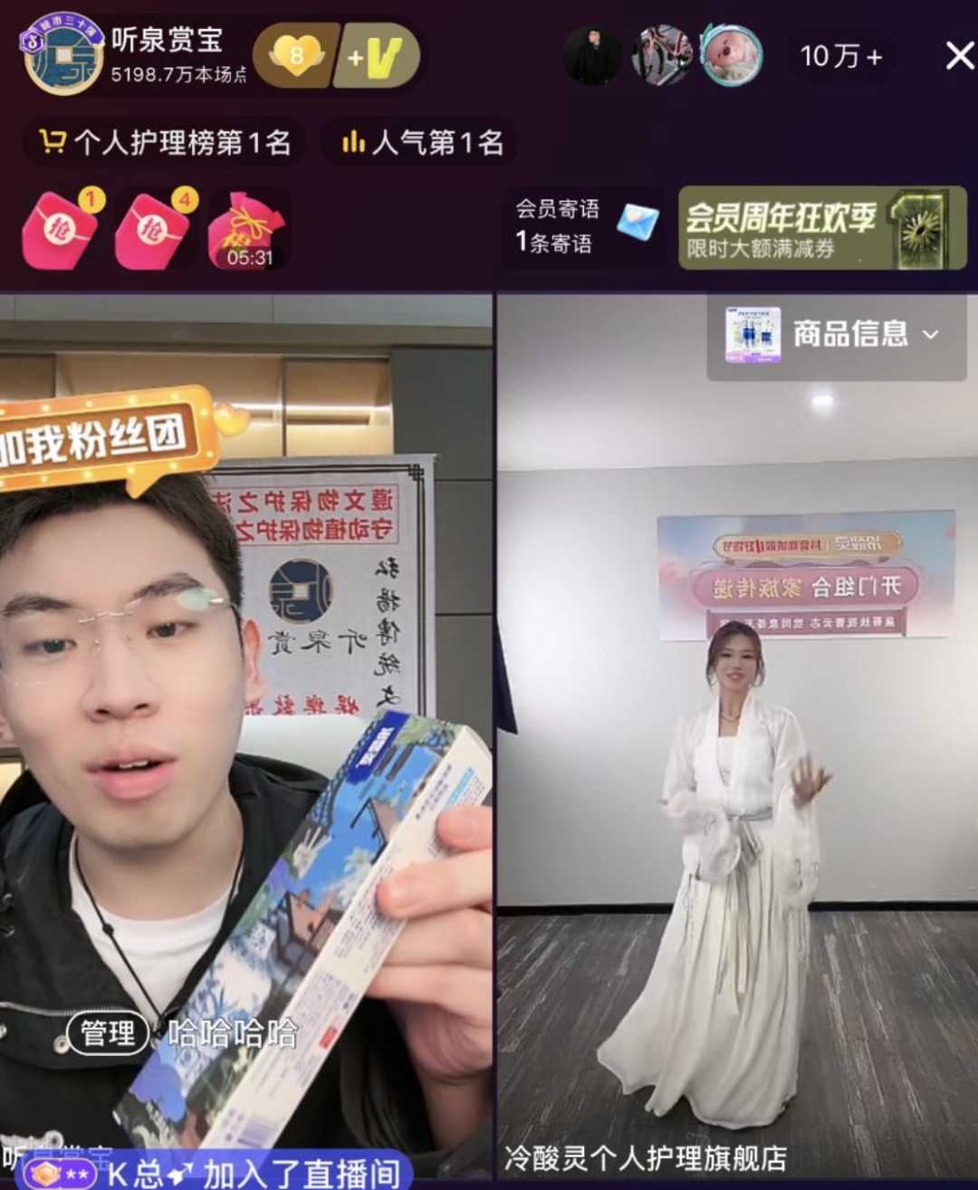 儘管這批新晉頂流的帶貨能力尚待驗證,卻能在雙十一之際帶給抖音不少聲量。10月18日晚,“聽泉鑑寶”在復播第三天開啓直播帶貨首秀,雖然750萬的銷售額並不算出色,但正如他在直播中所説“雙十一了,電商有活動咱們也得支持一下”。他的核心價值或許並不在於為平台貢獻多少GMV,更在於為平台的大促節點提供話題性和關注度,讓抖音在電商大戰如火如荼之際不至於“失聲”。