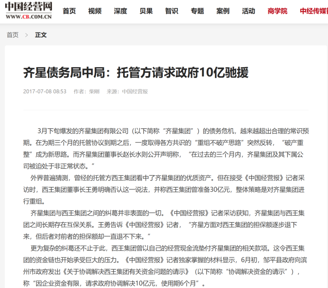 最開始,喊老王總“大哥”的兄弟出現了資金問題,西王與這家公司是相互擔保的關係。
