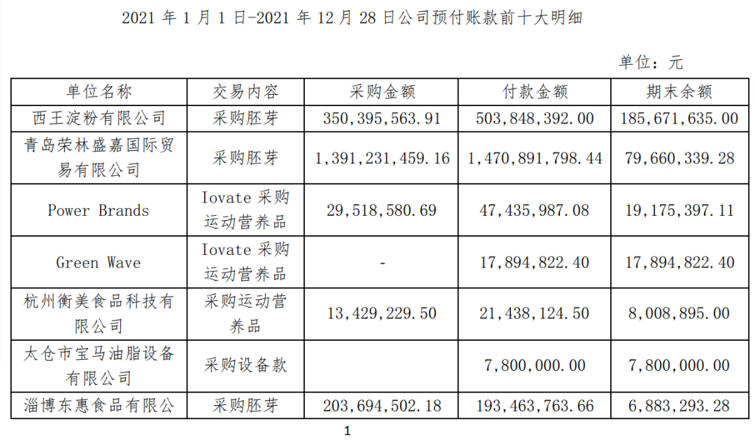 2021年,西王食品又向一家叫“榮林盛嘉”的公司採購了13.9億的胚芽,支付了14.7億的費用。