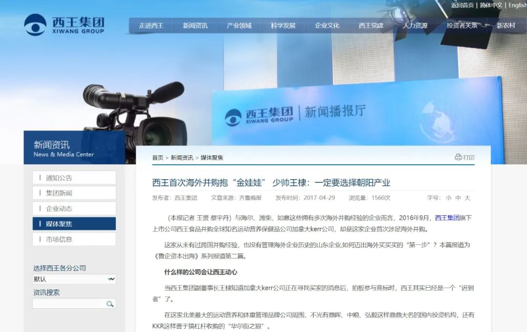 過了兩年,小王總又有了新的目標,以7.3億美元(約合48.75億元人民幣)的價格吃下加拿大Kerr公司,他家的title是: