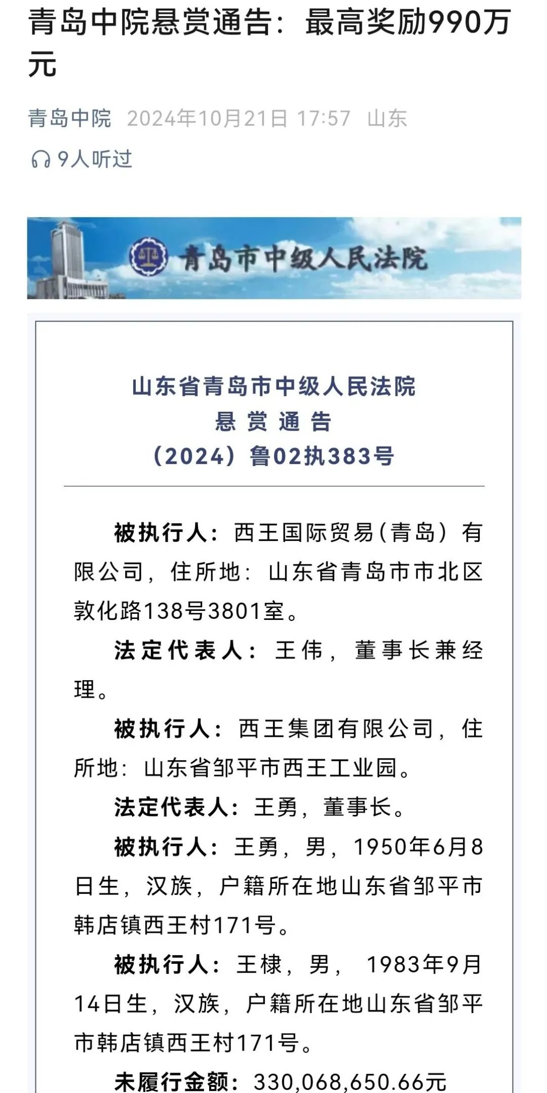 山東有一對王姓父子,在富豪榜上的身家超過了70億,因為拒不支付3.3個小目標,上了懸賞榜。