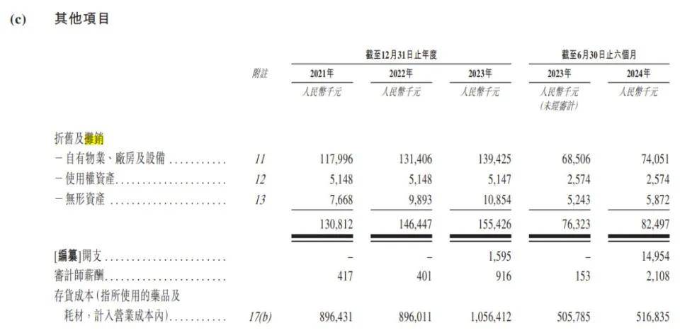 明基醫院的折舊與攤銷費用也在逐年增長,由2021年的1.3億元增至2023年的1.55億元。