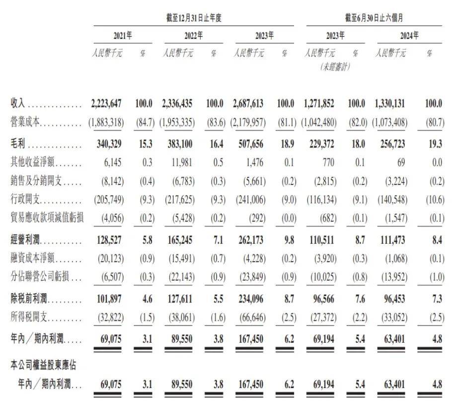 2021年至2023年,公司的淨利潤分別為6907.5萬元、8955萬元、1.67億元,淨利率分別為3.1%、3.8%、6.2%。