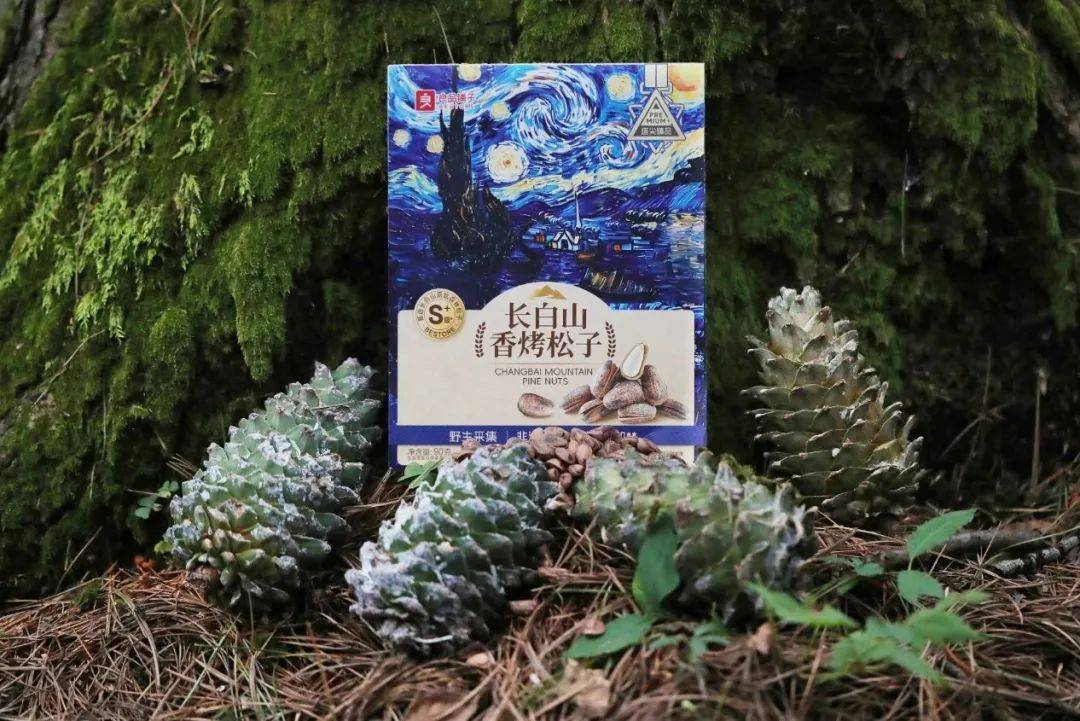 松子打磨、開口以後,再經低温烘烤變熟、激發出香味,這些身披自然“虎皮”的小傢伙們,化身良品鋪子“長白山香烤松子”上市銷售。