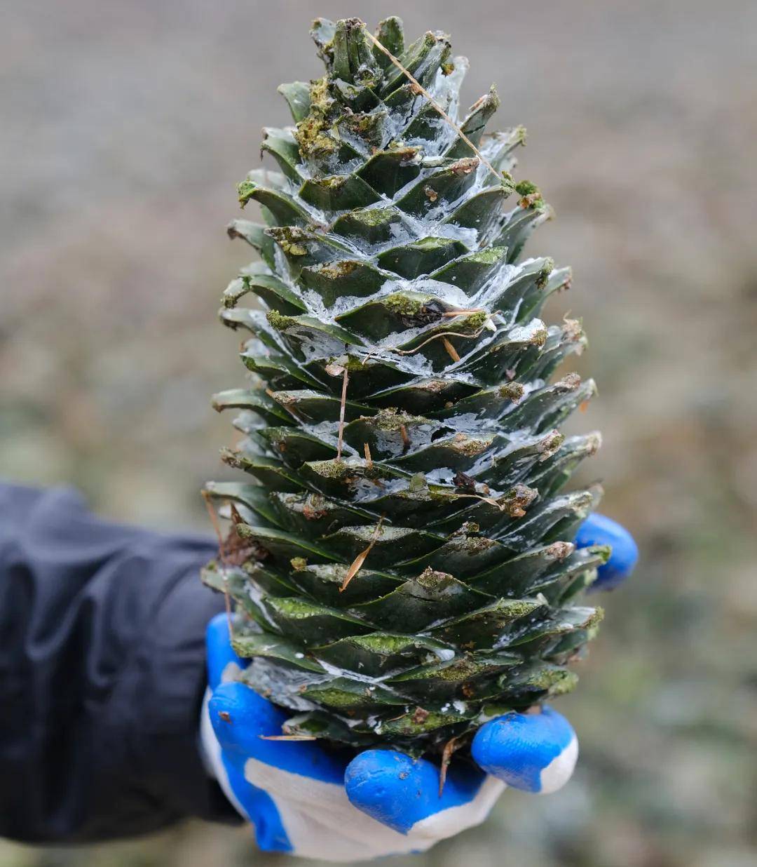 以俄羅斯松子為例,當地是等松塔掉在地上後再採收。由於當地天氣寒冷,掉在地上的一面松塔會受凍,松子的品質就會有影響。