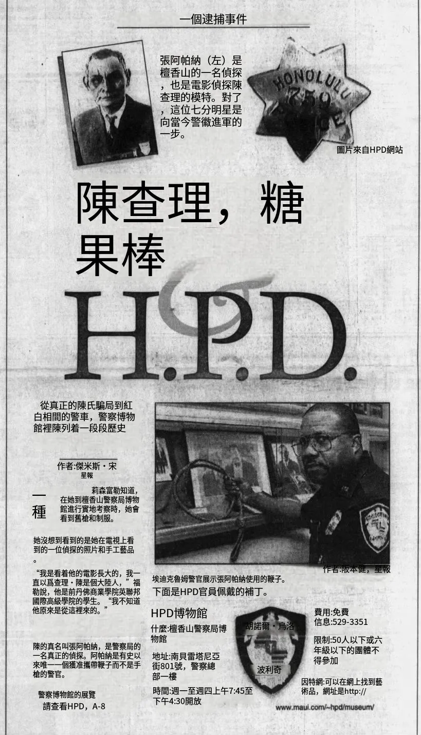 ● 鄭阿平登上美國檀香山星報,他使用過的皮鞭如今陳列在檀香山警局博物館(圖片為機翻)