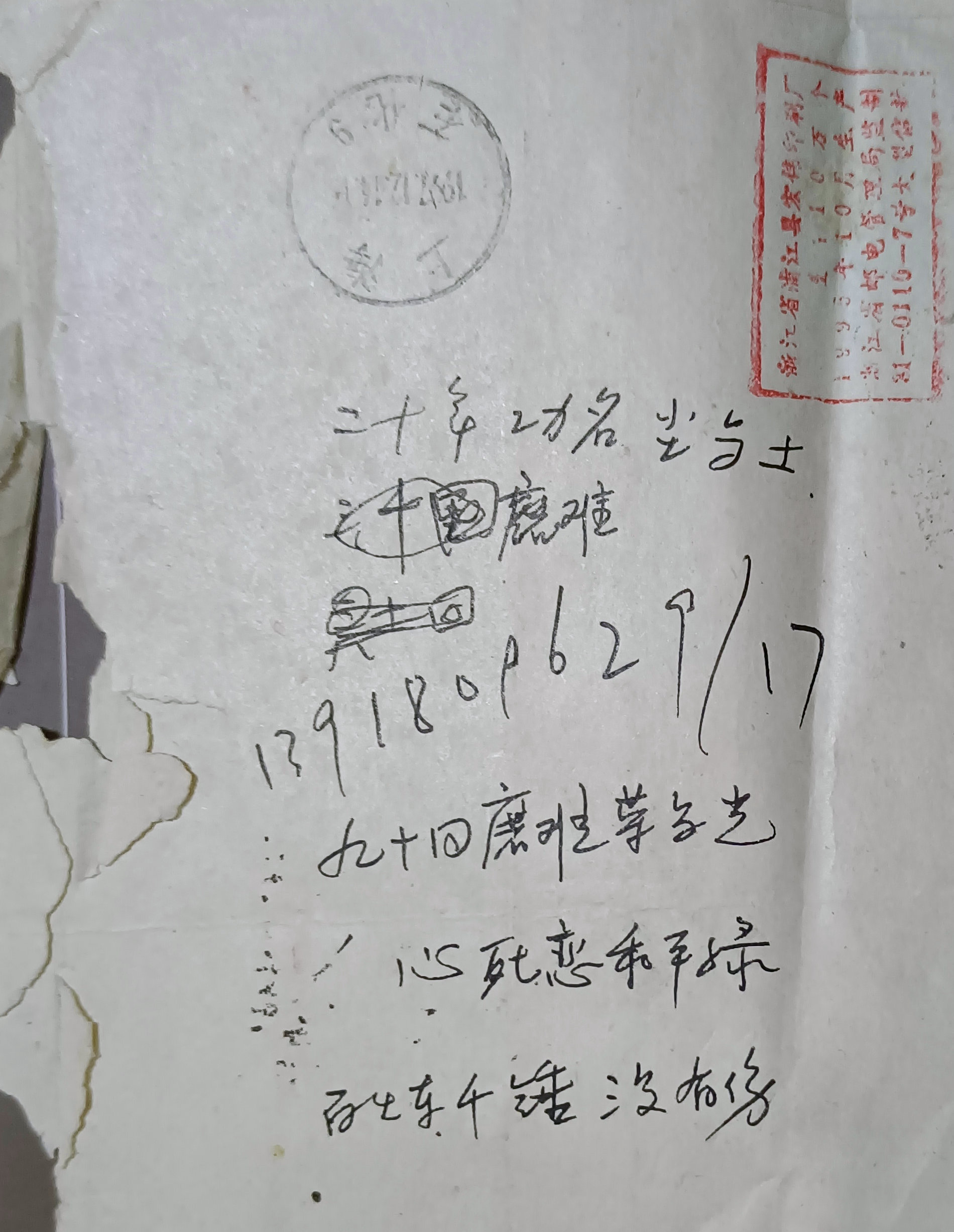 我在她信封背面寫了4句話,當時是想寫一首詩歌,沒有寫下去:
