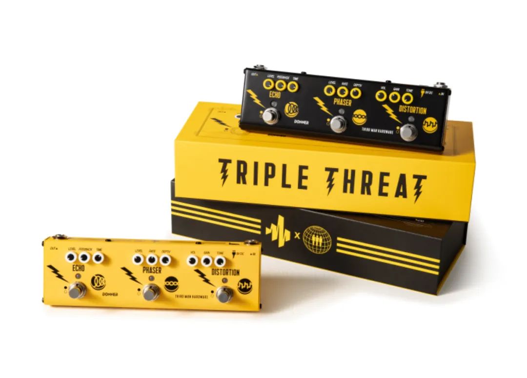 今年1月,Donner 與美國唱片廠牌Third Man Records (創始人為著名搖滾樂隊White Stripes 的主創Jack White)旗下的Third Man Hardware 樂器發佈了聯名款效果器Triple Threat,一經發布即銷售一空,受到全世界樂器愛好者的熱烈追捧,在今年被《Guitar Player》雜誌五月刊和《Total Guitar》雜誌八月刊獲評當月編輯精選設備。據聞,這款效果器已經出現在Jack White 最近現場演出的效果器板上,將在今年年底在國內正式發售。