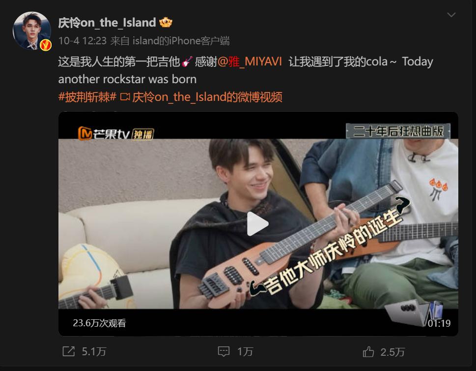 回看這一季節目,雅MIYAVI總能在嚴苛的自我要求之外,展現出温柔又體貼的一面。節目中,雅MIYAVI送給慶憐人生的第一把吉他,還頗有耐心地教他按和絃。當慶憐表示“自己會每天學習”,他笑着説“這就是我送你的目的”,而當慶憐有點笨拙地按琴絃時,雅MIYAVI還會鼓勵説,“你也會遊刃有餘的”。