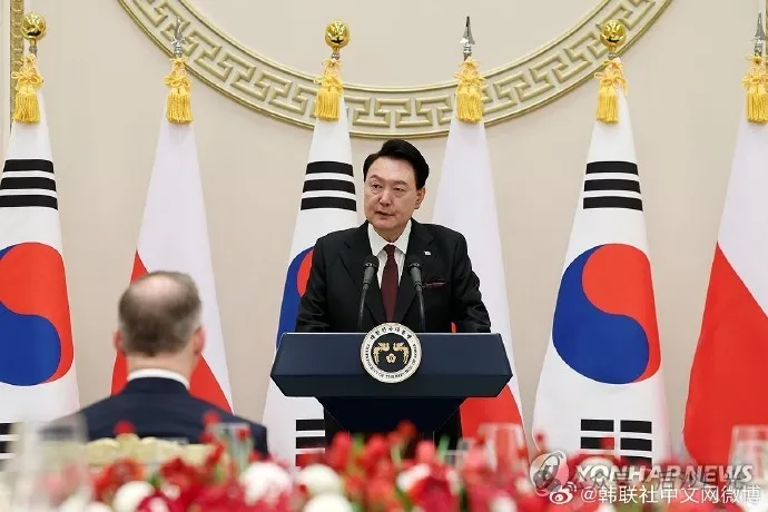 24日,尹錫悦與波蘭總統杜達在青瓦台迎賓館舉行的聯合記者會上表示,韓國將根據朝俄軍事合作動向,分階段向烏克蘭提供致命性武器。