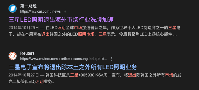 估摸着扛不住國內這麼玩,三星電子就溜了,包括這次三星要退出 LED 業務的報道里,就提到了 “ 低價產品競爭激烈 ” ,計劃 2026 年最先停掉的,也是照明設備業務。