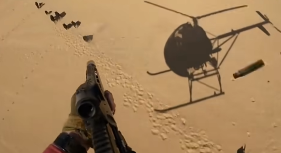 要麼就直接展現恐怖直立猿的強大科技,國外有很多大農場,會直接派出直升機,利用噪音把野豬驅趕到空曠地帶,然後居高臨下,用大口徑槍械挨個點名,野豬跑到吐血,都不如飛行員輕輕一推操縱桿。