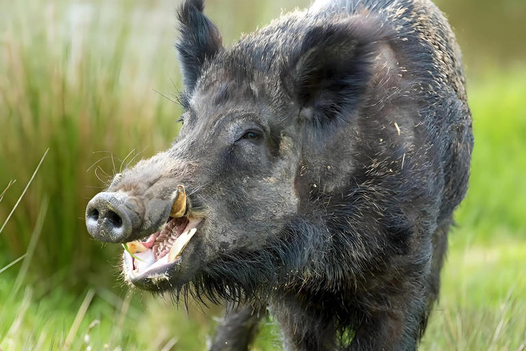雄性野豬,還長着尖鋭的獠牙,直接從泥頭車加強成了粉碎戰車,拱你一下就是兩個血窟窿,非常要命。所以民間有句土話,“一豬二熊三老虎”,字裏行間全是害怕。