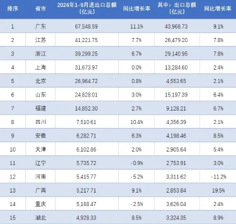 橫向對比來看,廣東也是今年前三季度,外貿大省中唯一實現兩位數增長的省份。