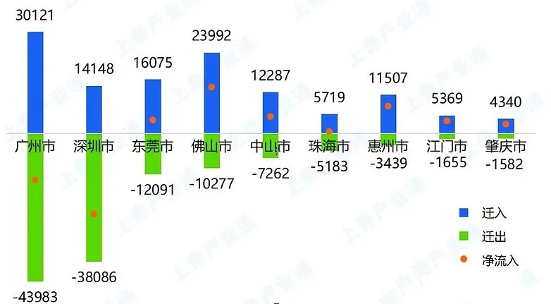2019-2023年大灣區(除港澳)企業遷移情況。圖片來源:上奇產業通