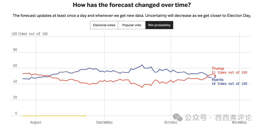 親民主黨的538,也終於認為特朗普的贏面超過了50%。