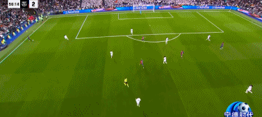 萊萬第二球:巴薩中路配合迅速套邊,左路傳中,萊萬前插頭球,皇馬中路來不及搶點。