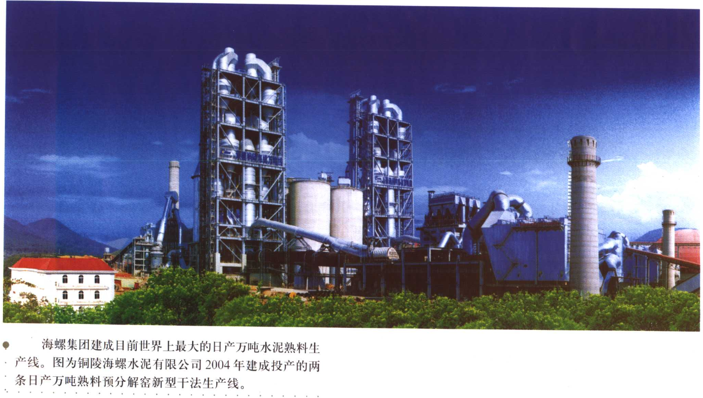 海螺集團日產8000噸熟料生產線於2003年9月建成,四條日產萬噸熟料生產線於2004年底全部建成投產,標誌着中國水泥工業在技術上實現了全球領先。