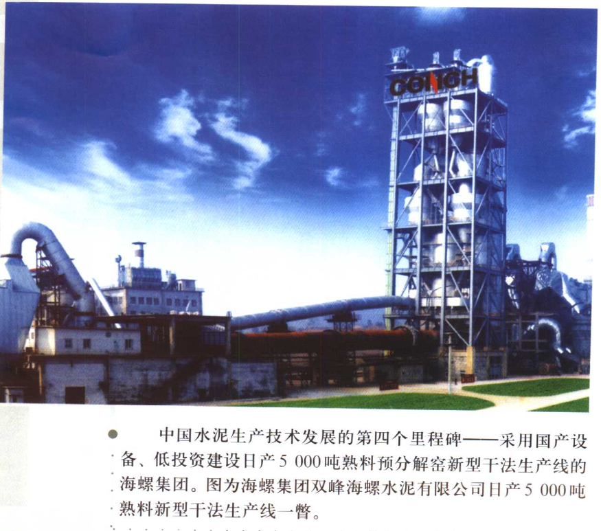 2000年後,隨着海螺水泥日產10000噸國產化水泥生產線的投產,標誌着中國水泥工業在技術上完全追趕上了西方先進水平。