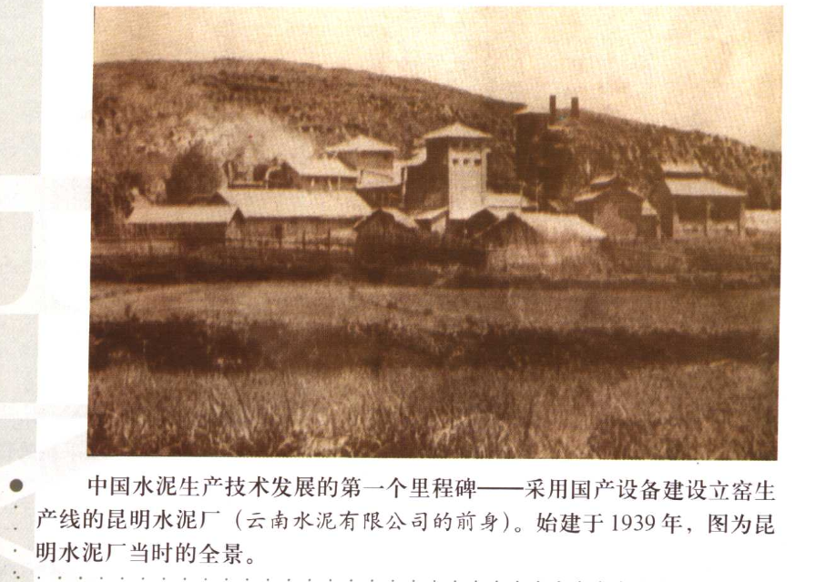 中國當時僅僅能夠製造立窯的設備,1939年第一條採用國產設備建設立窯的昆明水泥廠投產,是中國水泥生產技術發展的第一個里程碑。(王燕謀,《中國水泥發展史》)