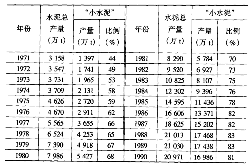 雖然改革開放前中國水泥工業的技術進步體現在迴轉窯上,但是水泥產量增長最主要的貢獻卻是來自立窯——這是更落後一代的技術。