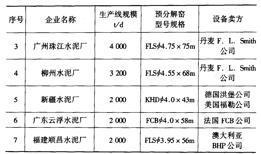 2002年前,新型於法生產線建設中主要採用日產2000~2500噸熟料生產技術,掌握日產4000噸熟料生產技術的企業只有冀東水泥廠和寧國水泥廠等少數幾個企業。
