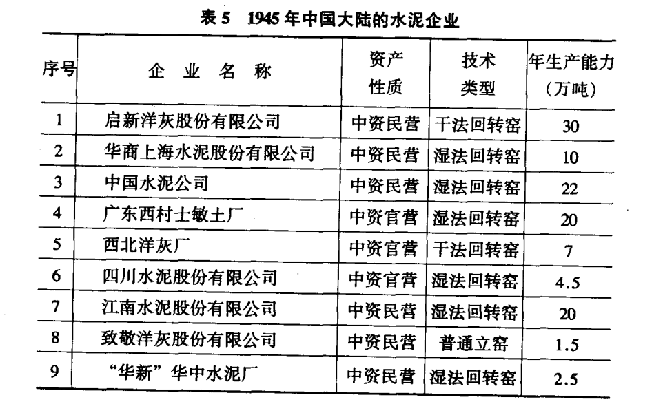 解放前中國規模最大的水泥廠是華新大冶水泥廠,產能達到50萬噸,絕大多數水泥廠的產能都在10萬噸以下。