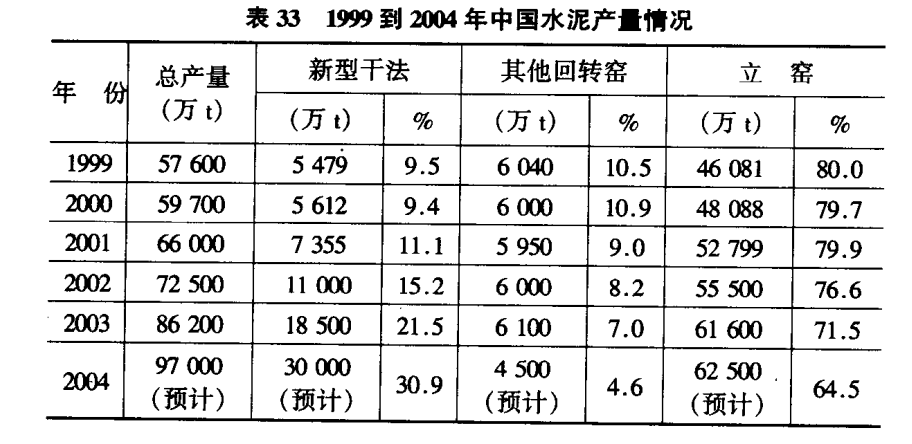 2002年到2004年新建的新型幹法生產線中,日產熟料4000噸以上規模的數量達到60%。我國新型幹法生產技術水平得到普遍性提升,這標誌着中國在水泥工廠的設計、設備製造、設備安裝和土建施工,以及生產管理與操作技術等方面,都已提高到一個嶄新的水平,能自主發展現代水泥生產。
