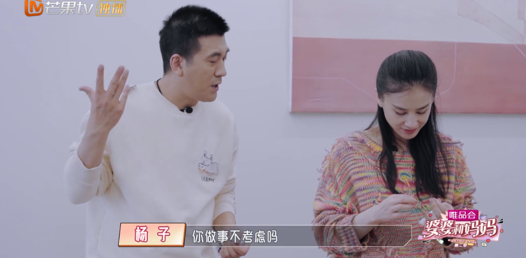 比如黃聖依會給婆婆洗澡,有傳統乖媳婦一面。但楊子只會在當下獎勵黃聖依一個口頭表揚,沒了。