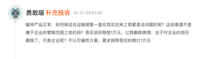 此外,光明乳業私下與她進行協商,提出以1萬元作為賠償,並要求她刪除微博的解決辦法。