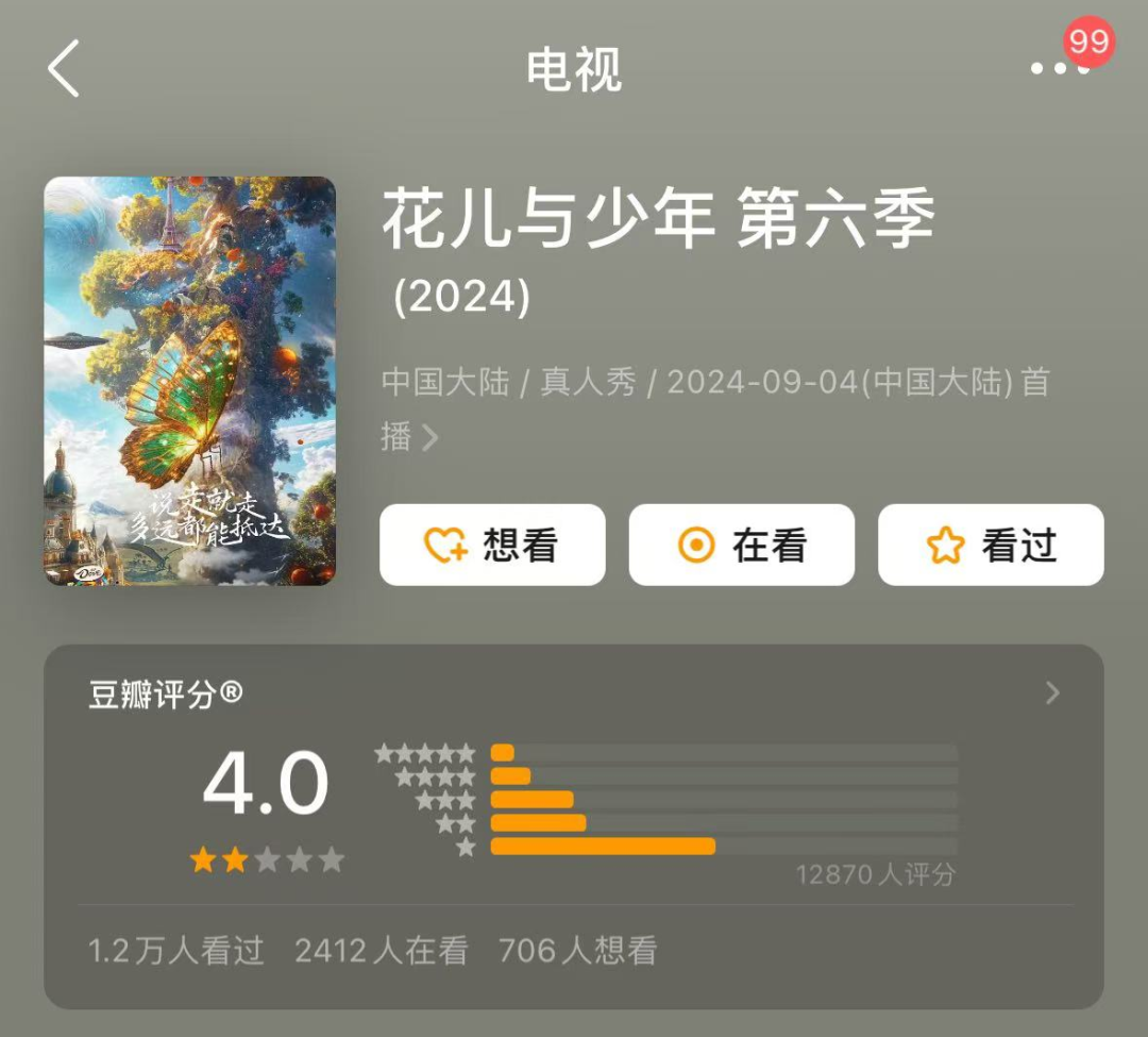 “花少6”豆瓣評分僅4.0,“社媒爆點”過載口碑卻被營銷“反噬”?_風聞