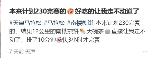 “缺乏經驗的人跑天津馬拉松,體重不降反升。”