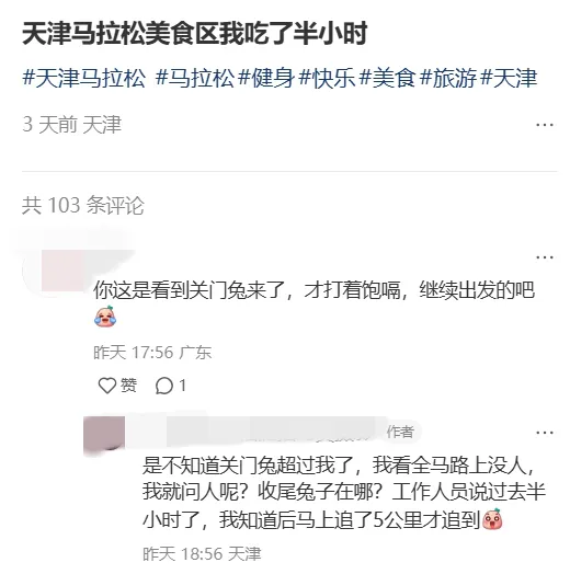 有的天馬選手在社交媒體上反饋,這次成績不理想,不怪自己,主要怪補給站佔用了自己太多的時間。