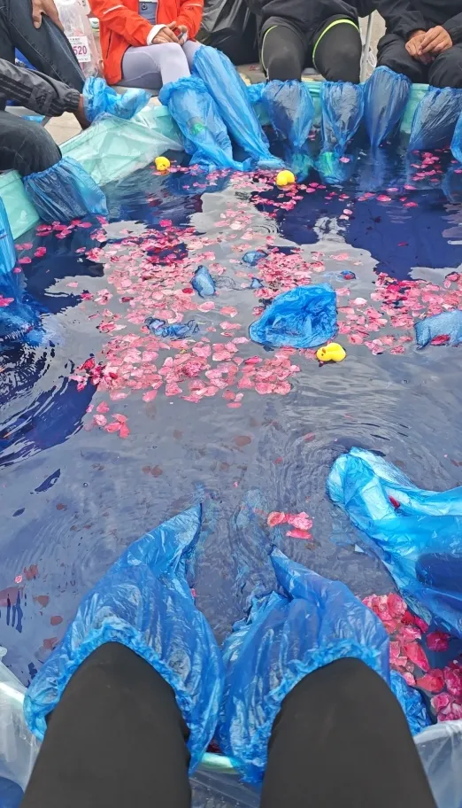 一位選手在賽後説,天馬最爽的一點就是,和其他選手一起泡腳,不斷有志願者過來加冰,作用類似冰敷,緩解跑步帶來的腿部痠痛腿脹,“在寒冷的秋冬交際,那裏有最暖的升騰。”