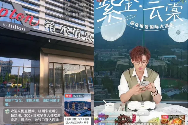 不少連鎖酒店如華住、錦江、希爾頓紛紛在抖音平台上通過「直播團購+日曆房」的形式銷售酒店客房產品,“希爾頓、金陵飯店、悦榕莊都來了,這個雙11有什麼理由不囤呢?”張真興奮表示,曾經高高在上、訂房動輒四位數起的高檔酒店和民宿,都在雙11閃現3位數的超低折扣,這讓花錢越來越謹慎的中產們,也有了“亂花漸欲迷人眼”的驚喜感。