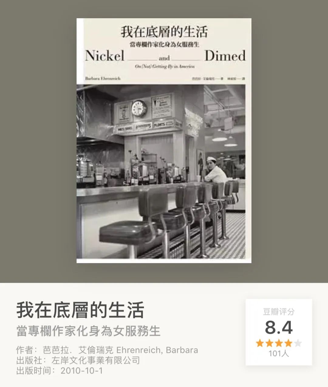 2010年的時候,美國一位記者寫了一本書,叫做《我在底層的生活》,這本書在豆瓣的評分達到了8.4分。講述的是:一名專欄作家擯棄原有的生活、卧底成為最底層的一名勞工、靠微薄的薪水艱難度日後寫出的紀實文學。