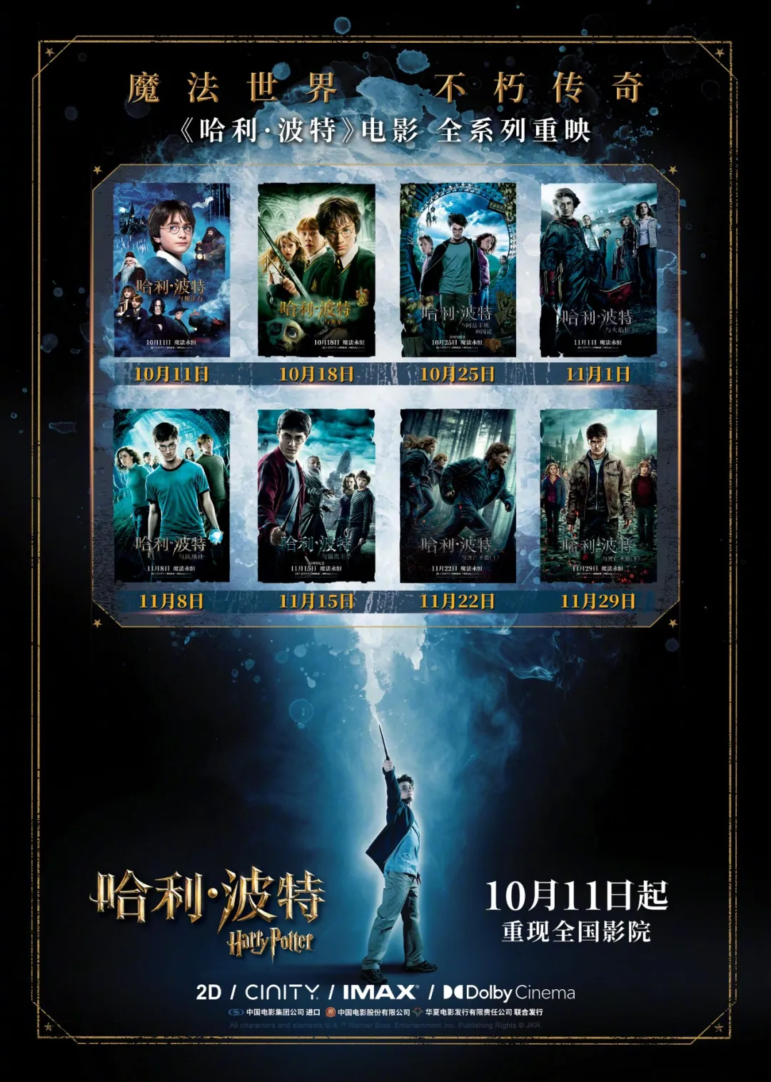 10月登陸院線的“哈利.波特”系列電影更不必説。雖然這一經典IP曾在諸多影展、電影節有過小規模重映,但市場需求依然存在,時隔多年仍能一呼百應。從當前的票房情況來看,本次重映的“哈利·波特”八部曲有望取得4至5億元量級的總票房,為國慶檔後的10月大盤增添一抹亮色。