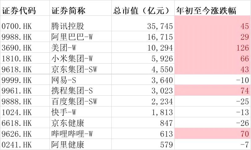 圖:恒生科技代表性公司年內走勢 資料來源:Wind