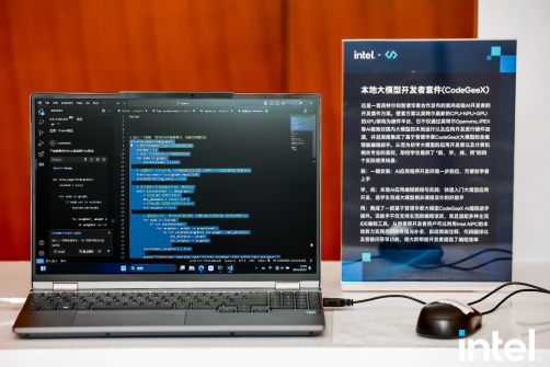 本地大模型開發者套件(CodeGeeX)以英特爾最新XPU架構為硬件平台,不僅通過英特爾OpenVION,IPEX等AI框架對國內大模型的本地運行以及應用開發進行硬件加速,並且深度集成了基於智譜華章CodeGeeX大模型的全能智能編程助手,從而為初學大模型的應用開發者以及計算機相關專業的高校,職校學生提供了 “裝, 學, 練,用”的四個實際使用場景。