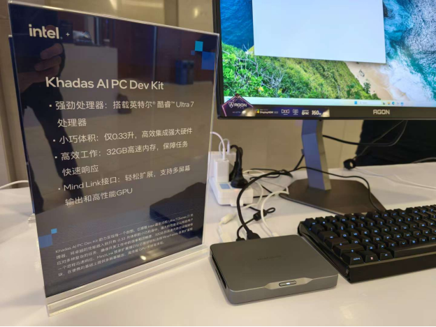 Khadas Al PC Dev Kit 開發者工具套件,採用酷睿Ultra 7 處理器並集成了Mind Link 接口,為開發者提供高性能 AI PC 算力基礎,方便開發者輕鬆擴展多屏幕輸出以及高性能GPU。