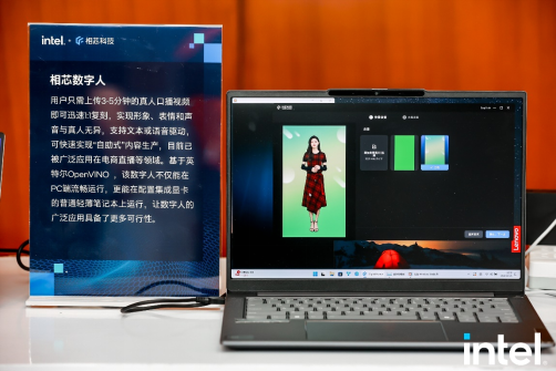 通過相芯視頻數字人,用户只需上傳3-5分鐘的真人口播視頻即可迅速1:1復刻,實現形象、表情和聲音與真人無異,支持文本或語音驅動,可快速實現“自助式”內容生產。基於英特爾OpenVINO ,該數字人不僅能在PC端流暢運行,更能在配置集成顯卡的普通輕薄筆記本上運行,讓數字人的廣泛應用具備了更多可行性。