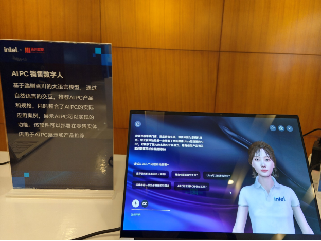 百川AI PC 銷售數字人基於端側百川的大語言模型,通過自然語言的交互,推薦AI PC產品和規格,同時整合了AI PC的實際應用案例,展示AI PC可以實現的功能。
