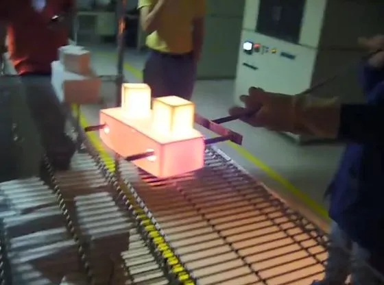 視頻中,LI-900立方體在1200度工業爐烘烤紅温後,由於它的導熱係數極低,熱量在材料中的傳遞非常緩慢,因此高温主要集中在表面。