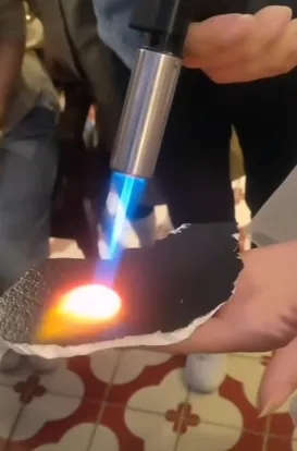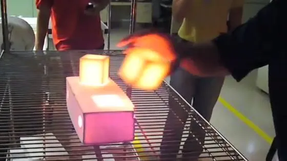 在一個視頻中,一個男人徒手拿起一塊剛烤的紅彤彤立方體,表情看起來很輕鬆。真的假的?